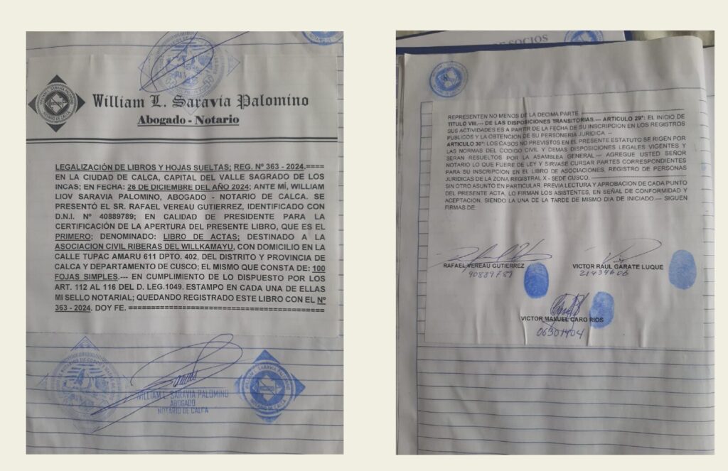 A manera de saldar una deuda con nuestro pasado y un asumir un deber con nuestro futuro, nació el día 17 de enero del 2025 la Asociación Civil Riberas del Willkamayu con el objetivo de: fomentar la protección y recuperación del ecosistema del Wiillkamayu (Vilcanota) y el Valle Sagrado de los Incas como un espacio saludable para la vida.